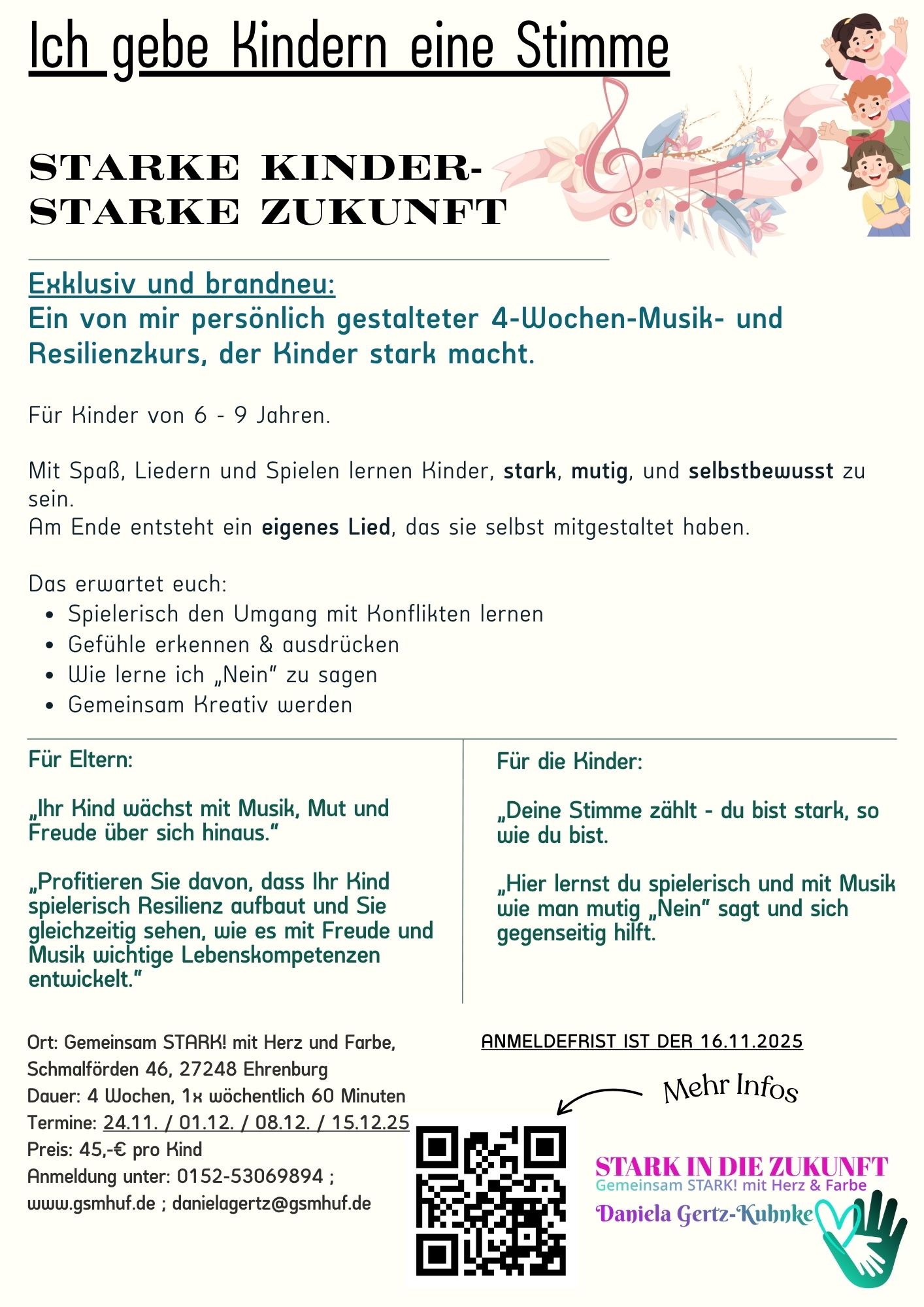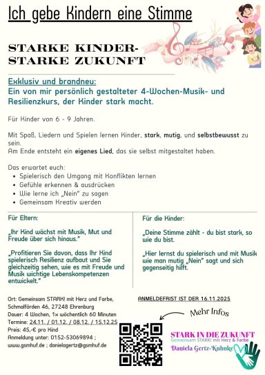 „Profitieren Sie davon, dass Ihr Kind spielerisch Resilienz aufbaut und Sie gleichzeitig sehen, wie es mit Freude und Musik über sich hinauswächst.“